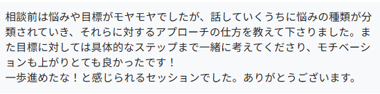 英語コーチとして必要な知識や実践を積めるだけでなく、強みや個性を活かして多角的に自分と向き合うことのできる講座でした。自分だからこそできる英語コーチとしての道を開いていける期間でした。